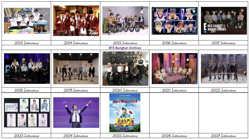 | 2025 Interviews | 2026 Interviews | 2027 Interviews |